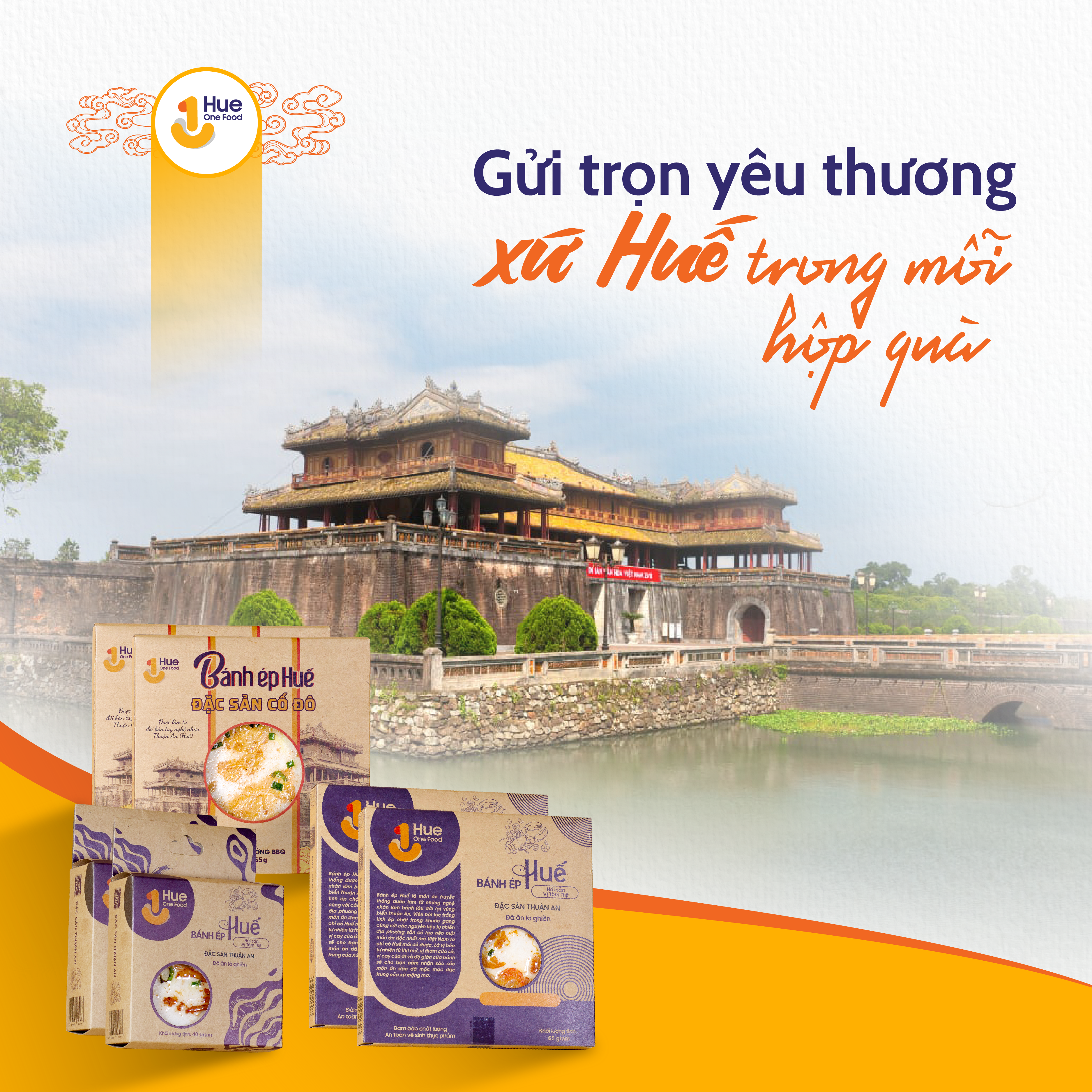 Đưa bánh ép đi khắp muôn nơi, mang hương vị quê hương đến những người con xa xứ. Mỗi hộp bánh nhà HueOneFood được chăm chút chất lượng bên trong lẫn ngoại hình bên ngoài. Là món ăn thân thuộc đối với mỗi người dân cố đô để đi xa và luôn nhớ về. Bánh